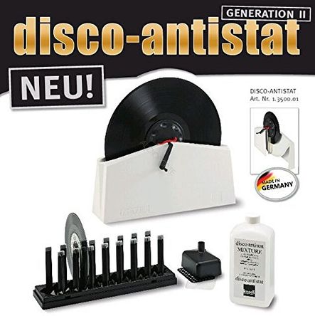 Praktyczny zestaw do pielęgnacji i gruntownego czyszczenia płyt winylowych. Po umyciu płyty uzyskuje się trwały efekt antystatyczny. Płyn Disco-Antistat, który jest recepturą własną firmy KNOSTI - Disco-Antistat, usuwa kurz, brud, tłuszcz z rowków płyt winylowych i nie pozostawia zacieków.
